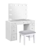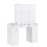 Crafted from durable wood products, this vanity set is built to last while offering timeless appeal. The clean white finish creates a fresh, bright look that fits seamlessly with various interior styles—from contemporary to glam. Whether you’re applying makeup, styling your hair, or just taking a moment for self-care, this vanity provides the perfect space to do it all in style.